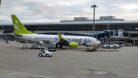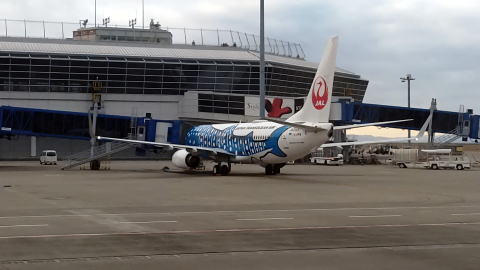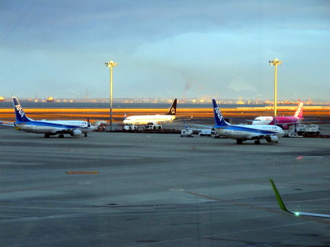 運航便は減っているが、さすがに朝は飛行機も多い。ソラシド、日航、スカイマーク、全日空と並ぶ国内線ターミナル。中部はやはりB737が圧倒的に多い。昔はもう少し767も飛んでいたが、787以上、777等は殆ど見かけない