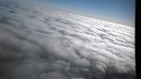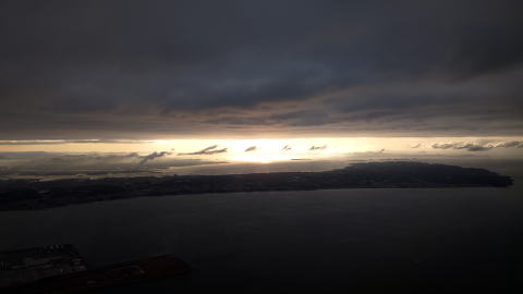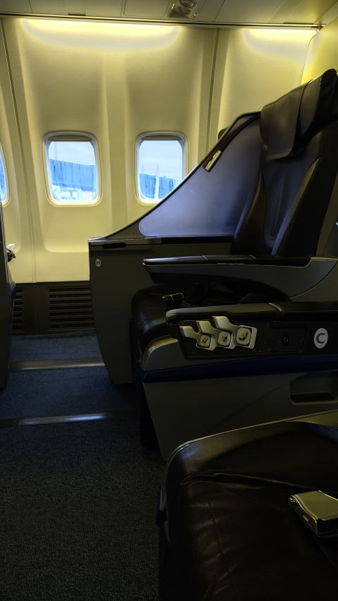 マイル特典での搭乗だけど、前日にアップグレード可能で窓側が空いていたのでプレミアムにした。朝食も摂れるしね