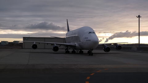 となりにもう1機、ドリームリフター。ベースは中国国際航空、チャイナエアライン、マレーシア航空で旅客便として活躍したB747−400なので当時はもちろん主翼端にはウイングレットが取り付けられていた。ドリームリフター改造時にもウイングレットは残されていたが、その後の運行中にフラッターが発生したために取り外されたそうだ