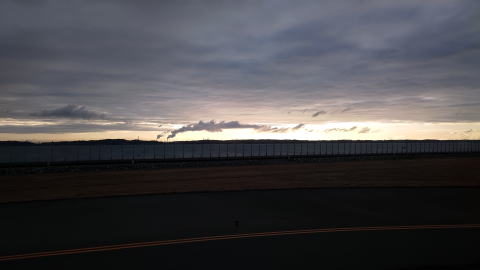 時速は170キロくらい。スプリンクラーがガンガン回っている