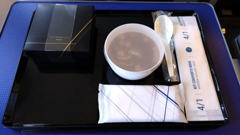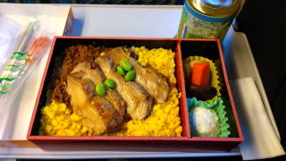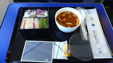 この短距離でもプレミアムクラスに乗れば食事が摂れる