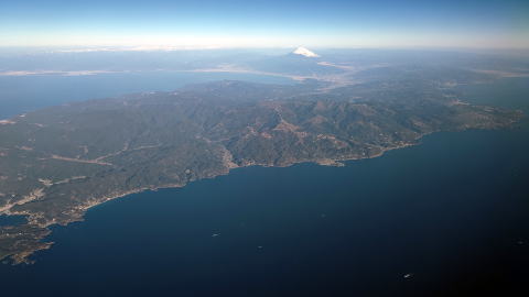 降下しながら相模湾を東進。城ヶ島、三浦半島を左に見ながら北へ