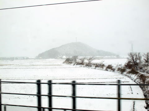 西大寺からは橿原線。遠くに見える葛城山地もうっすら雪化粧している。今は嘘みたいに晴天だけど、こちらも雪が降ったんだな