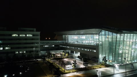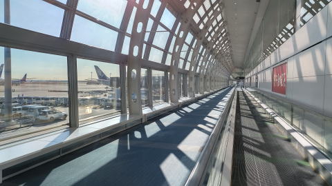 部屋から空港ターミナルを見る。ターミナルに近いし、低層階なのでグランドの飛行機は見えない