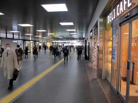 早朝深夜くらしか閑散としたイメージが無い、つまり終日曜日関係なく混雑している印象の京都駅自由通路だが、今はこんな感じ