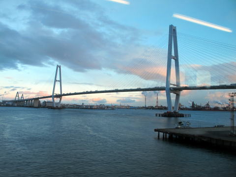 伊勢湾岸自動車道名港中央大橋。あっちの橋は何度も通ったことがあるんだけどね