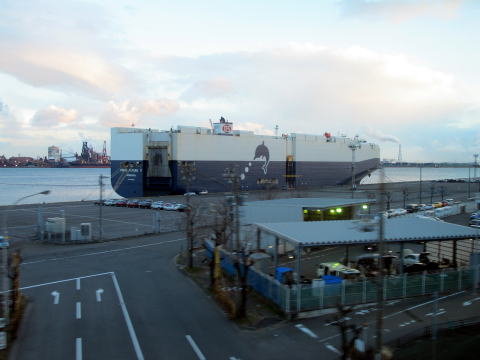 トヨタ自動車のグループ唯一の海運会社、トヨフジ海運が運航する自動車運搬船。船尾を良く見ると「TRANS FUTURE7」の文字が見える。同船はオセアニア航路向けの船のようだから、トヨタ製自動車のオーストラリアへの輸送なんかに使われているのかな?オーストラリアやニュージーランドは英連邦なので日本と同じ右ハンドル。日本車も多く走っている土地だ