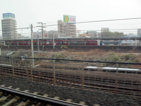 名鉄電車が見える。もうすぐ名古屋に到着なのだが、市内がもう普通に雪だ。関が原だけなのかと思ったら・・・・・・