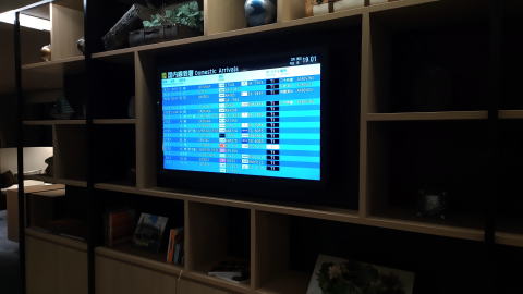 空港直結なのでロビーには発着案内のモニターがある。この手のホテルには必ずあるけど。もちろん、各部屋のテレビでも見ることが出来る