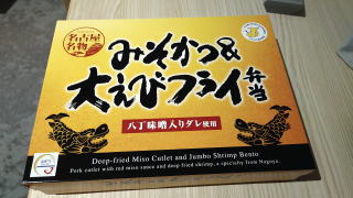 とりあえずご飯食べよう。名古屋駅で買ってきた駅弁、みそかつ&大えびフライ弁当で腹ごしらえ