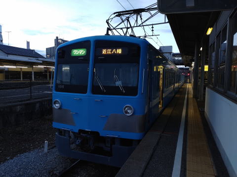 乗り継ぎの近江八幡行きは新101系を改造した100形モハ105-1105編成