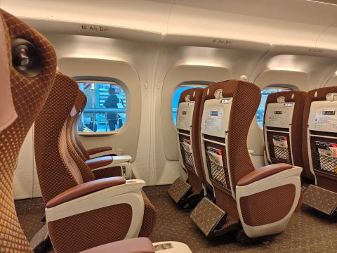 特急しなのも乗車率が高い列車の一つだが、今日のグリーン車は半数以上空席である。それでもさすがに前面展望できる1番席はA~Dまで埋まっている