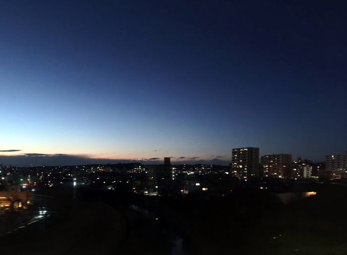 西が少しだけ陽を残しているが、夜の帳が急速に降りてくる。高蔵寺付近の丘陵地帯を抜けて、この辺りからは眺望が開けてくるが、もう夜である。勿論、乗るには明るい昼間の方が色々見えて楽しいが、どうせ住宅地を走る路線だからと、こんな時間を選んだのは何を隠そう自分なので文句の言いようもない