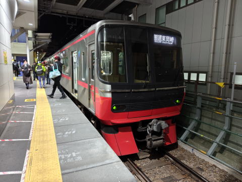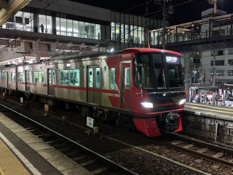18時38分発準急豊川稲荷行9501F。2019年から導入されている9500系のトップナンバー編成だ。5700や6000系置き換えを目的に勢力を拡大している。さっき乗った3300系に準じた設計で、令和なりの改良が加えられている。4連の9500と2連の9100があり、今後の名鉄の主力となる形式だろう