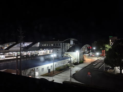 泊まった部屋が3階なのでちょっと見難いけど、一応駅は見える。周囲が暗すぎて列車来てもやっぱり暗い