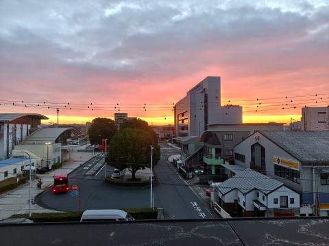 綺麗な朝焼け。美濃太田駅前からおはようございます