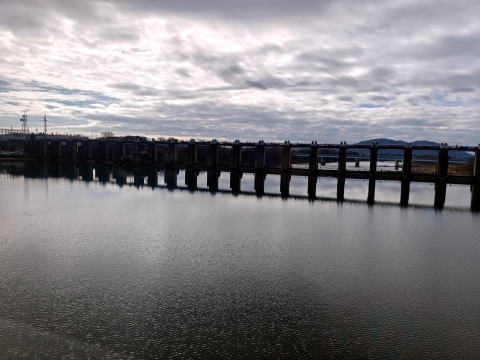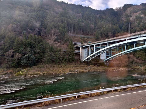 木曽川を渡る。すぐ下流側に今渡ダムがあるのでいつもここは満々と水を湛えている