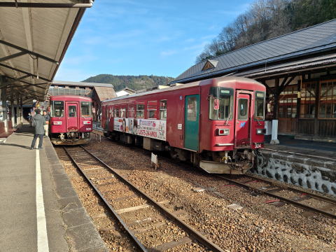 しかし、ここ長良川鉄道は違った。平日の美濃太田発北濃行初便は6時26分、北濃に8時40分に着いて、折り返しは10時28分発、美濃太田着は12時41分だ。明らかに何もない北濃で2時間近く滞留する。その次は9時56分発で北濃12時6分着、これも2時間近く滞留して14時5分発、美濃太田には16時37分に着く。片道2時間かけて行って2時間待って、また2時間かけて戻らざるを得ないという効率の悪いものになってしまった。10月の改正まではもう少し短いスパンで折り返しが出来たものだが・・・・・・