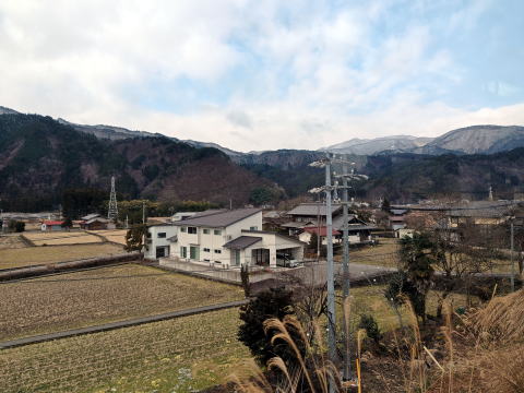 列車は濃尾平野の北限を快走している。片道二時間もかかるので鈍足で時間がかかるのかと思ったが、駅間は70km程度の、ローカル線にしては高速で走行している。距離が長すぎて、この速度で走っても普通列車では2時間かかるというだけの話なのだ