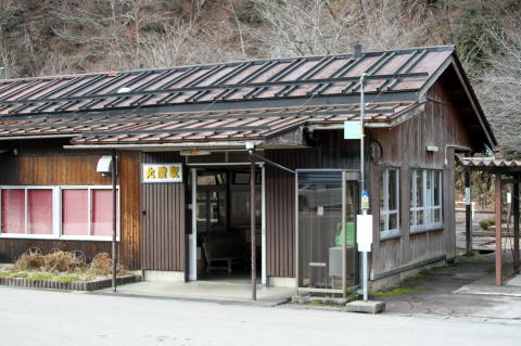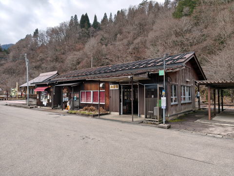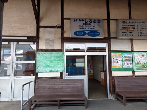 さすがに古くなって若干のゆがみが見えるが建材の北濃駅舎