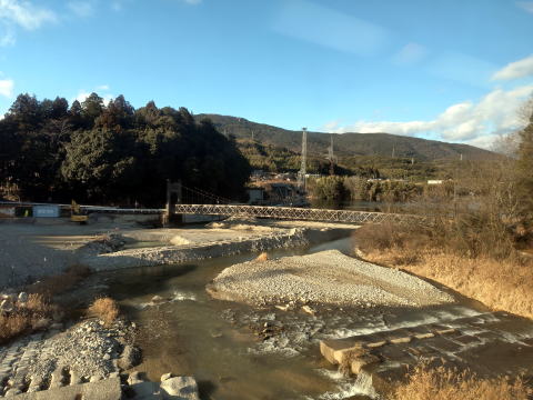 ずっと木曽川に沿って走るようなイメージのある中央西線だが、名古屋から来ると中津川の先、ここでやっと木曽川に出会う。安曇野と木曽の分水嶺、鳥居峠を越えて藪原で初めて木曽川と出会いずっとそれに沿ってきた中央西線。木曽川はここから北寄りに進路を変えて中央西線と別れて行き、恵那峡を経て八百津の先、さっき渡った美濃川合のちょっと上流で飛騨川と合流して犬山の方から伊勢湾に流れ込むのでこの先下流側では中央西線とは一切関わらなくなる