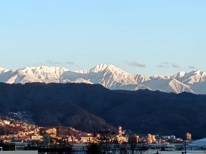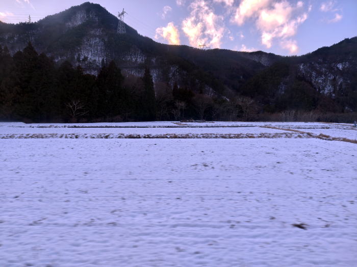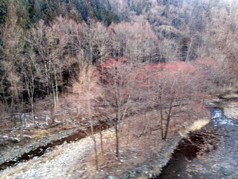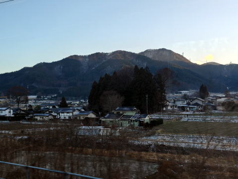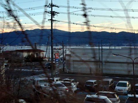 塩尻に向けてラストスパート。雪原を駆け下りてゆく。最近は温暖化で12月に入っても雪が見られる機会が減ったが、今回はこんなところで雪景色を見ることが出来た